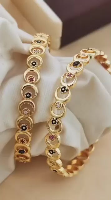 Antique Gold Bangle – Intricate Traditional Design with Ruby Accents